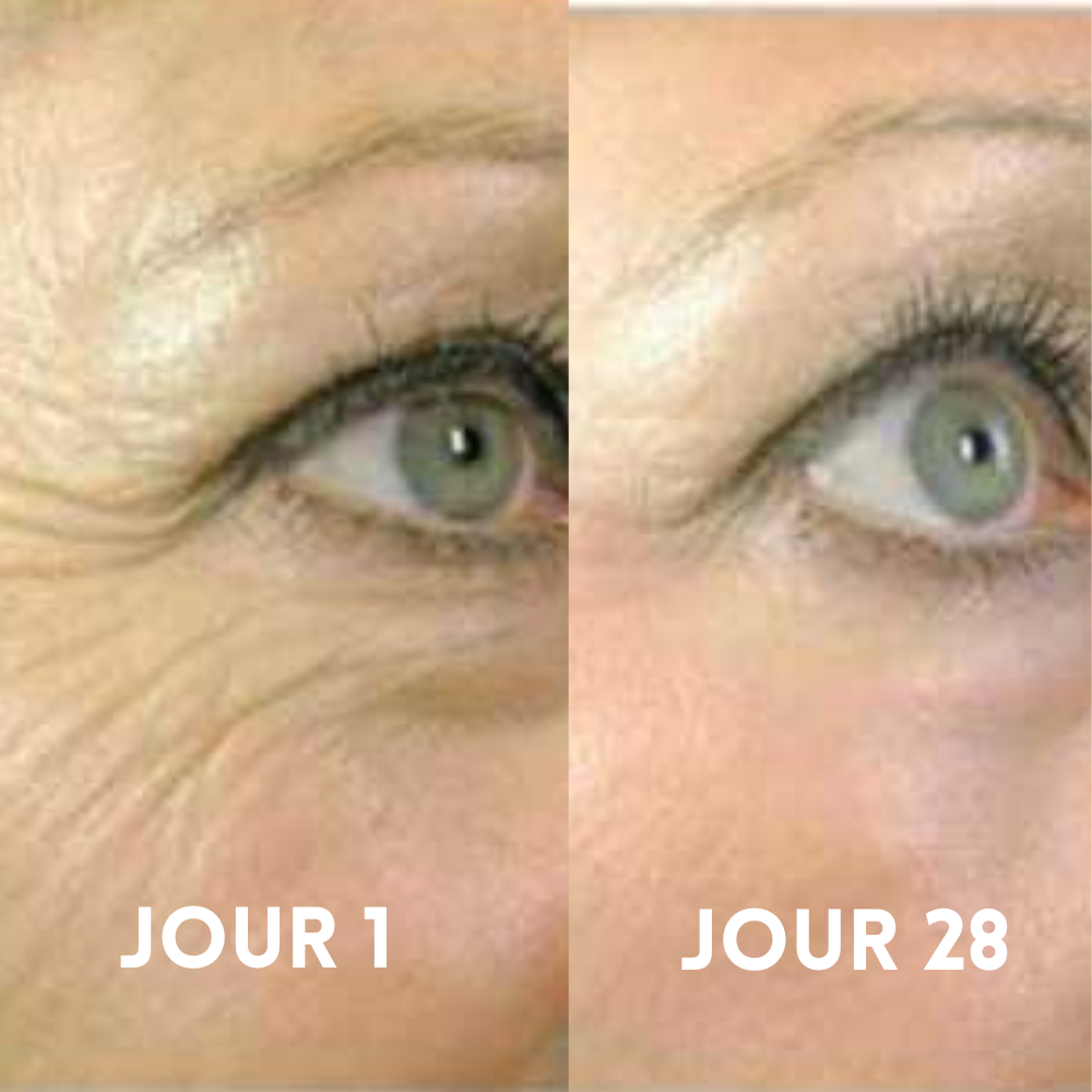 Beaucoup de personnes ressentent rapidement plus de confort et de souplesse. Pour l’aspect rides/taches/texture, la régularité sur plusieurs semaines est clé (souvent 28 jours comme repère).